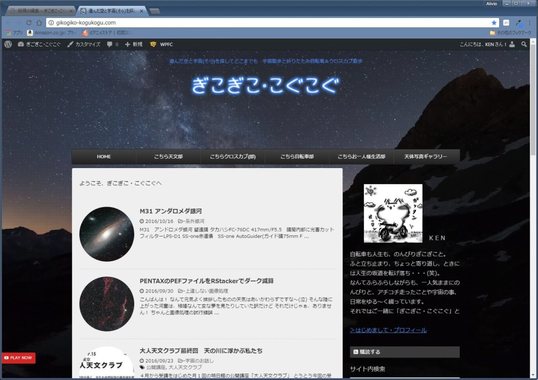 また台風ですな~ 今回の新月期も天文屋さんには不毛な感じになりそう(泣) でも明日は行けそうかな? いやまあ、次の日は普通に仕事なんだけどさ そうそうホームページの話し またなんで突然そんな話しをし始めるかなってお思いでしょうけど... -