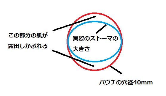 なぜかと言うと、当初は直径40mmほどだったボクのストーマは上下方向に少し縮んでいて、便が縮んで肌が露出している部分に付着してカブレていたみたい