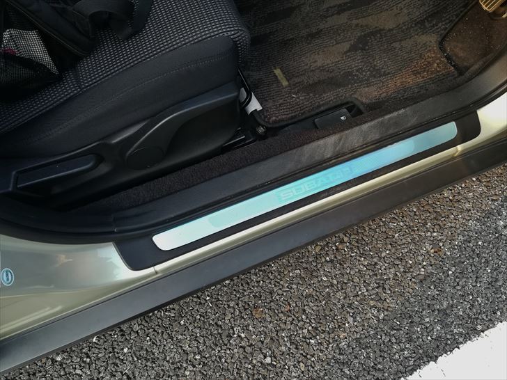 サイドシルのプレートは保護用のブルーのフィルムが貼られたまま