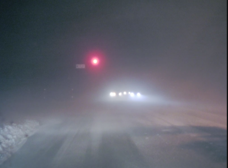 実際はもっと酷い感じで、吹雪でホワイトアウトと言うより、あまりにも雪の降る量が多すぎて前が見えない感じ